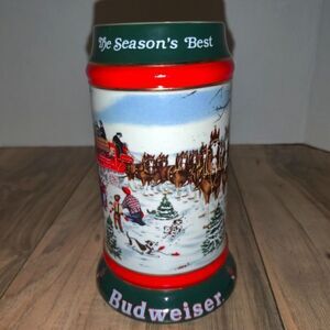 Anheuser Busch Budweiser The Season's Best 1991 Holiday Beer Stein Mug Series. Has some wear from age and storage. Sold as is.