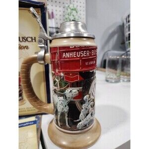 This Anheuser Busch Collection Dalmatian Family Aspiring Mascot Stein CS586 is a must-have for any beer enthusiast. Made in the United States, this lidded stein is perfect for collectors of Breweriana. The stein features the iconic Budweiser brand and is designed with a unique lid.