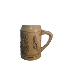 Handcrafted ceramic beer stein featuring Anheuser-Busch artwork, perfect for collectors or beer enthusiasts.