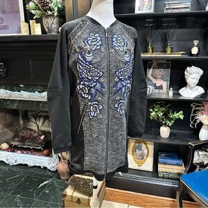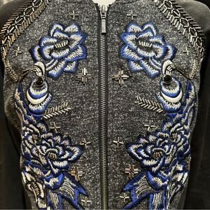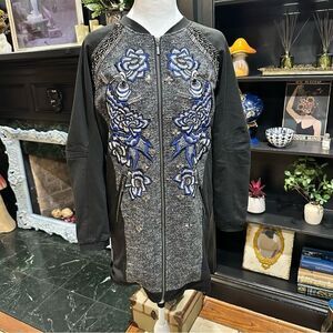 Anhha Intermix Beaded Embroidered Jacket Sweater Floral Black Zip Up Size S