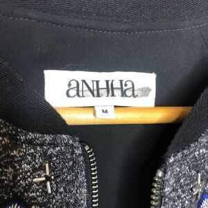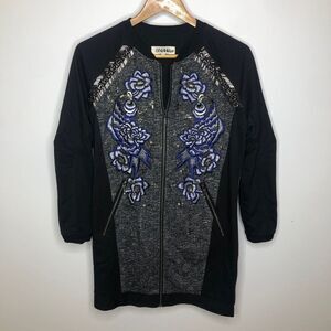 Anhha Intermix Beaded Embroidered Jacket Sweater Floral Black Zip Up M Gray Med