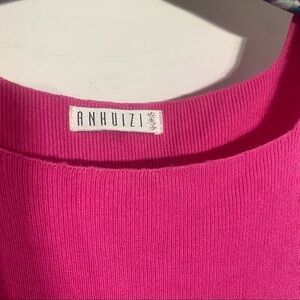 Anhuizi silk cotton blend ribbed knit stretch Miami pink tank top