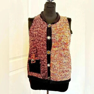 Ani Barrie Vintage Colourful Knit Button Front Pocket Womens M Vest Sweater USA