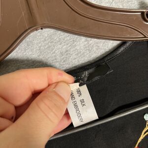 Ania A Open Cardigan Kimono Womens M Black Embroidered Silk Top Floral Artsy
