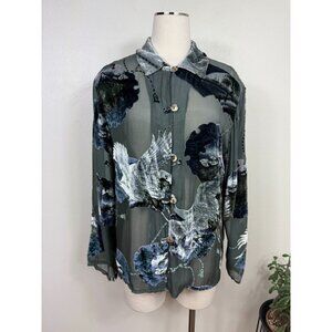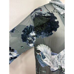Ania. A Womens Gray Sheer Silk Burnout Japanese Mt. Fuji Blouse