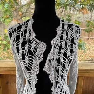 Anicy Manuguian Women's Grey Long Sleeve Crocheted Sweater Size XS/S