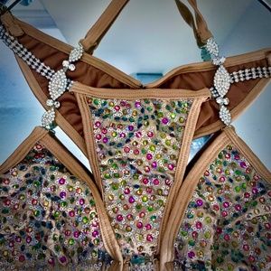 Tan Sequin Heavy stoned Brazilian cut bikini