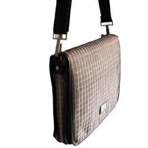 This pretty light brown crossbody messenger bag by Anika will make you smile every time you open her up and see the gorgeous satiny hot pink quilted lining - so pretty and functional! Large enough to carry a laptop or tablet-