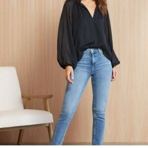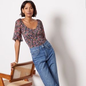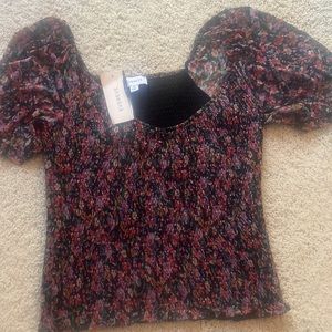 Brand new with tags. Black and multi floral Anika Rouched Mesh Top.
