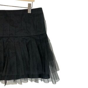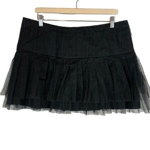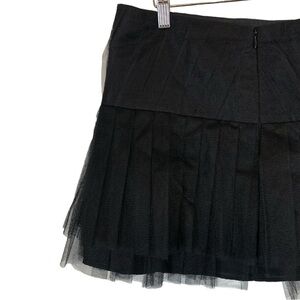 Features: This skirt is a very very rare Hungarian designer who has been featured on many runways during the 90's and Y2k era. She has designed for celebrities such as Cyndi Lauper and Madonna. This is a one of a kind pleated mini skirt that features a tulle over lay, low rise fit, and is lined. Zip closure.