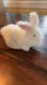White bunny moves rear legs and makes 2 different sounds when gently pressed on back.
