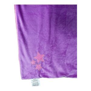 Pink and purple baby blanket with stars from Animal Adventure. Soft material. Preowned. Small discoloration and one area looks like there may be some stitched repair (see pictures). No holes.