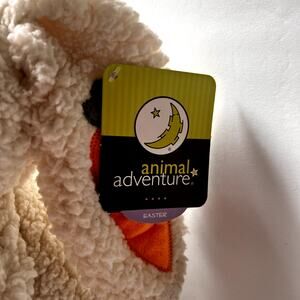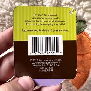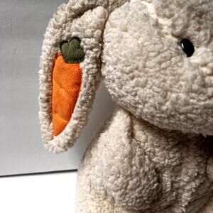 Animal Adventure with tags attached sherpa Easter bunny rabbit with carrots on his ears and paws stuffed animal.