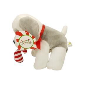 Animal Adventure Sweet Sprouts White Gray Puppy Candy Cane Plush Stuffed Animal