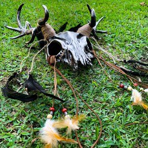 Made of high-quality plastic, then hand-painted and decorated with feather, lace, glitter, spike….