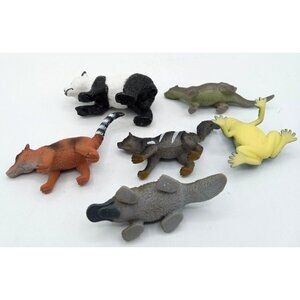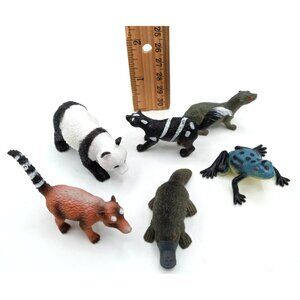 Add a touch of wildlife to your toy shelf or classroom with this lot of 6 miniature animal figures, featuring a variety of unique creatures! This set includes a panda, platypus, blue dart frog, otter, striped skunk, and a ring-tailed lemur—each sculpted with fun detail and painted for a semi-realistic finish.