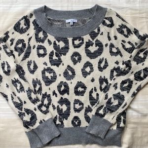 Soft, medium weight knit in a unique animal print (cheetah, leopard, giraffe?).