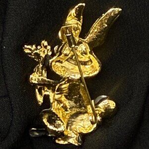 Charming vintage brooch set featuring a polka dot cat, a deer on a log, and a rabbit with a carrot. Ideal for accessorizing or collecting.