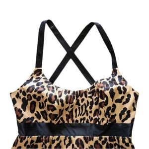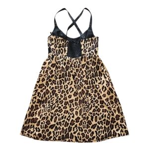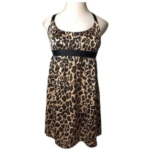 Animal Print 100% Silk Brown Black Babydoll Criss Cross Back Mini Dress Sz 4