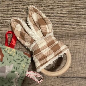 Animal Print Baby Sensory Tag Blanket and Bunny Ears Teeth Ring