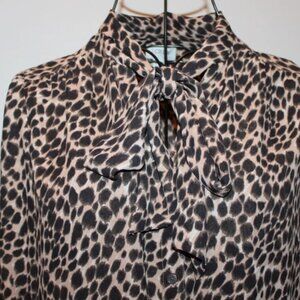 Animal Print Blouse J Crew Top Attached Scarf Tie XXS Oversize Button Up Blouse