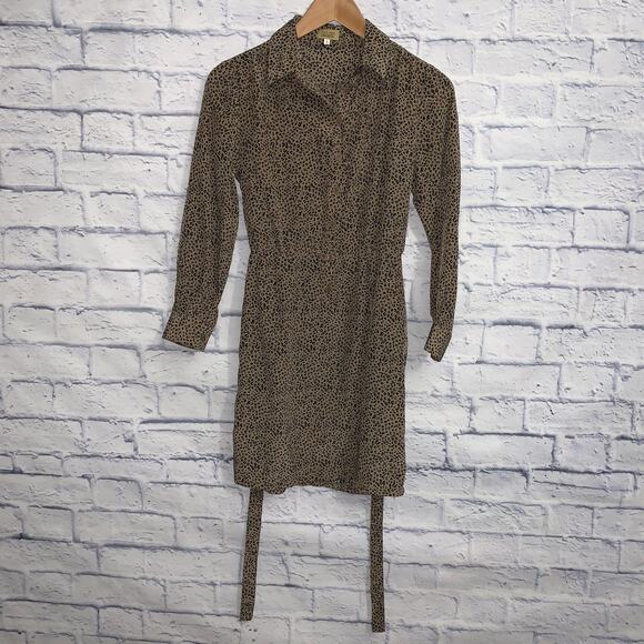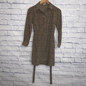 Preloved Long sleeve, 8 button front, collared shirt dress w/ matching belt for accentuated waist. Color: Brown/Black