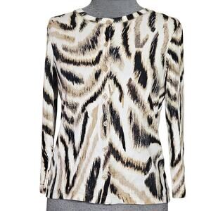Animal Print Button Up Cotton Cardigan Sweater Size Small