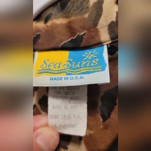 Stylish animal print button-up shirt with a mix of brown, tan, and black patterns. Perfect for a bold fashion statement.