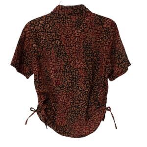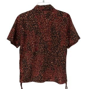 Animal Print Camp Shirt Black Brown Red Top Button Up Side Ties Womens Petite SM