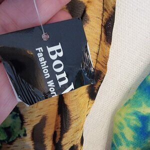 NWT Animal Print Cheetah Floral Polyester Scarf 60 X 12 In NEW