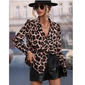 Animal Print Cheetah Leopard Casual Button Up / Down Shirt Black Brown Beige