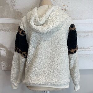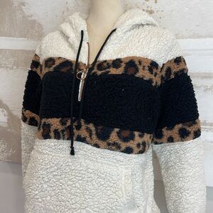 Animal Print Color Block 1/4 zip hooded sherpa by RD Style size M