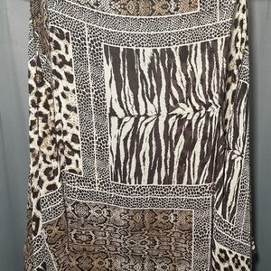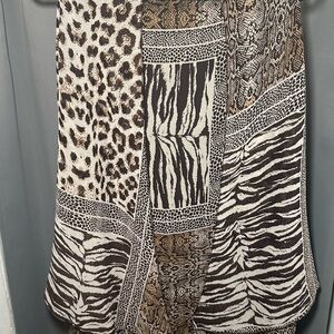 Stylish maxi dress with a mix of zebra and leopard prints. Perfect for a bold fashion statement.