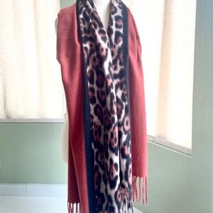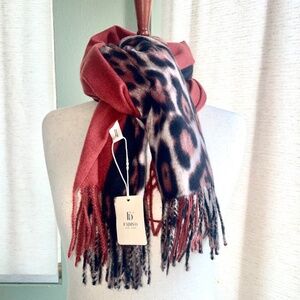 New with tag, extra soft animal print and a solid rust color makes this a super versatile scarf depending on how you style and wear it. This is a classy looking scarf that will add flare to business casual outfits or to a dressy night-on-the-town ensemble.