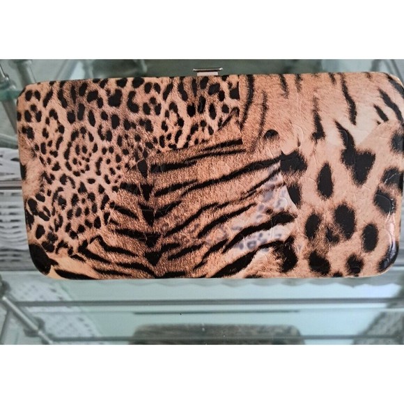 Animal Print Hard Case Wallet Credit Card Slots Tan Cheeta, Leopard, Zebra Print