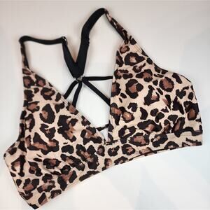 Animal Print High Waisted Bikini Halter Style Black Brown Swimsuit 561 Size L
