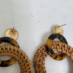 Animal Print Hoop Earrings Rattan Circle Big Statement Boho Tribal Plastic Brown