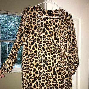 Selling this beautiful animal print/cheetah long Kimono from Windsor!! In GREAT Condition, only worn once! The Sleeves are about elbow length. I am 5'2" and it was the perfect height with a pair of heels, Did not touch the floor.. just above it.Silk like texture!!