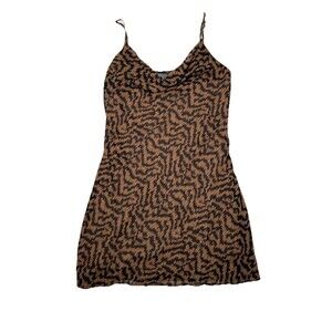Animal Print Mini Slip Dress Lined Cowl V-neck Women Size Large Lined Y2K