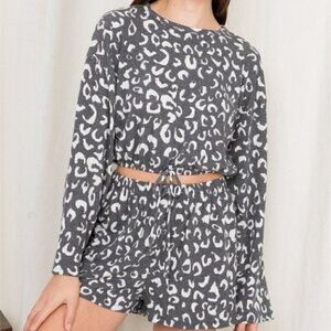 Leopard Print PRINT TOP & SHORT SET 63% POLYESTER 34% RAYON 3% SPANDEX tags are letters sizes s-4 m-6/8 l-10 ships in 7-10 business days fall winter lace crochet bodysuits top tops wildfox reformation revolve zara dressy office work jacket dresses holidayanthro anthropologie madewel thanksgiving chritmas layering layers cardigands vici summer spring Boho hippie 60’s 90’s 70’s beachy western aesthetic vibe bohemian retro vintage johnny gypsy spell vici arnhem chic l free people faithful love le