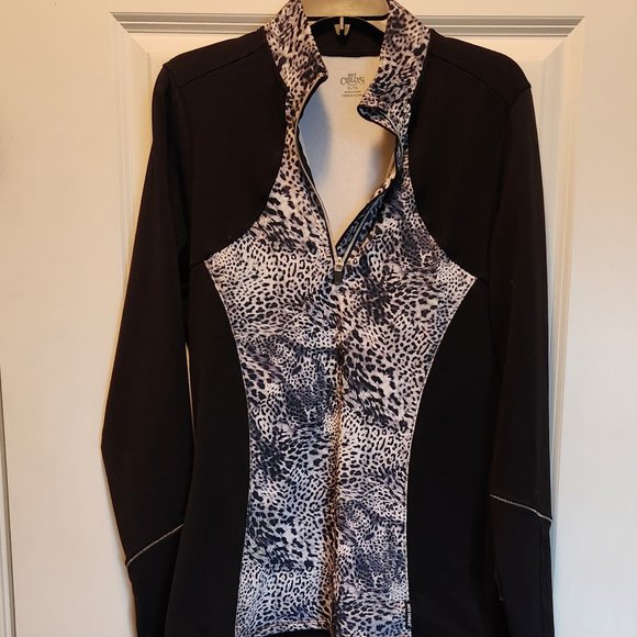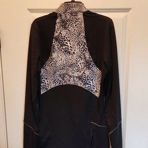 Quarter Zip sassy animal print ski top. Thicker material so it's great in cold weather. Stylish and fun! It is an XL but runs small - I'm usually a large and it's a little tight on me.