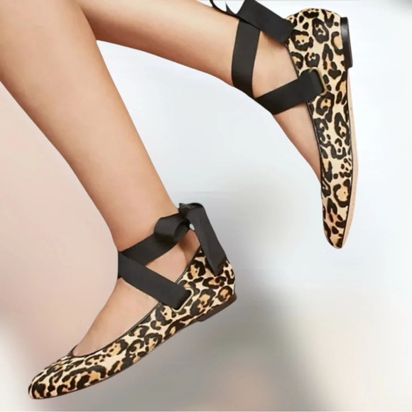 Animal Print Renee II Calf Hair Wrap Ballet Flats Leopard Mob Wife Size 8