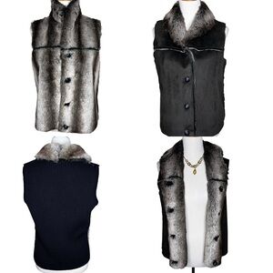 A great layering piece, silhouette is crafted of soft, plush fur / suede. It reverses to a buttery nappa suede finish from fur offering two looks in one. Lovely black buttons on both sides