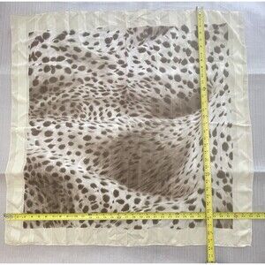 Features a warm ivory base with brown cheetah animal print. Lightweight and versatilewear it as a neck scarf, bandana, or handkerchief. Soft, breathable, and perfect for any season. Measures approx. 34" x 34".