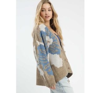 Designed in balloon sleeve roomy fit hoodie jacket top in French terry with animal print patch, metal floral button, outseam, vintage washing, solid color.