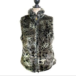 Animal Print Vest Reversible Faux Fur Solid Black Grey Leopard By FUDA Vegan S