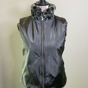 The favorite layer for between seasons, this vest gets fabulously upgraded in captivating faux fur and reverse and have solid Black with fur collar and POCKETS