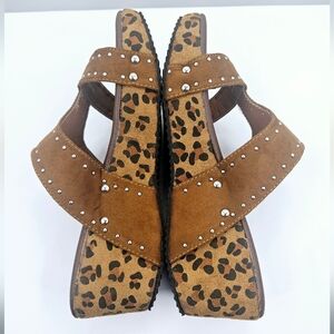 Animal Print Wedge Chunky Shoes Chocolate Brown