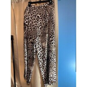 Animal Print Womens Large Aqua Brand lightweight wide leg Side Zip