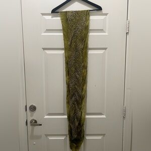 Animal Print and Green Sheer Double Layer Scarf About 100” long